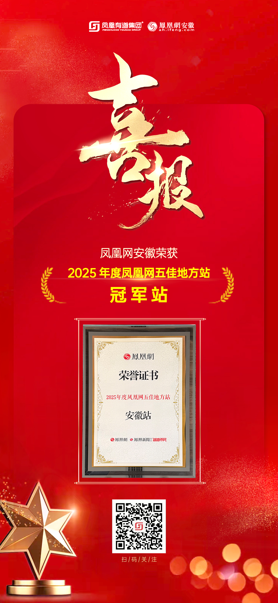 荣膺冠军,皖美启新!凤凰网安徽荣获“2025年度凤凰网五佳地方站”冠军站!以专业记录时代,用深情扎根江淮。感谢每一份关注与信任,未来我们继续并肩,与凤凰和鸣,传时代新声。
